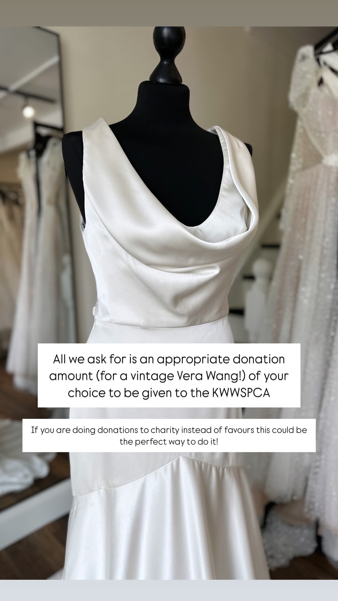 All proceeds from the sale of this gown are going to KWWSPCA Charity